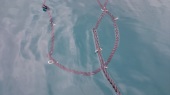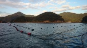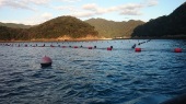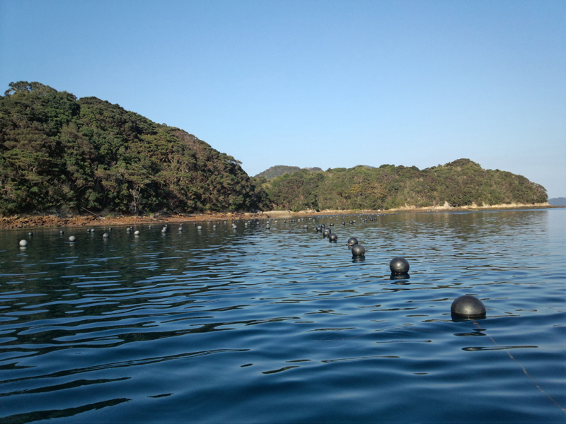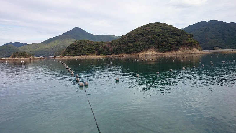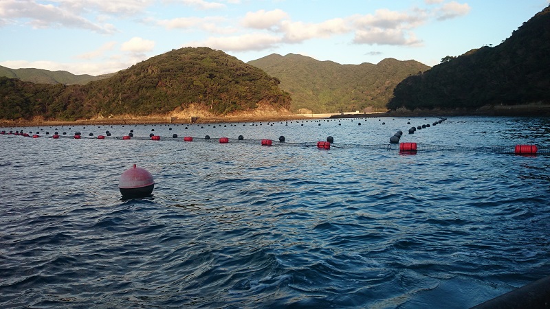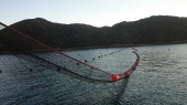 今回、防護網は、入江を仕切る形で設置しました。間口は195m、水深は最深で25mです。