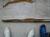 ●2014.3.6 水温 16度、添付写真は防護網をした方のもので、幅10cm、長さ130cmでした。 |