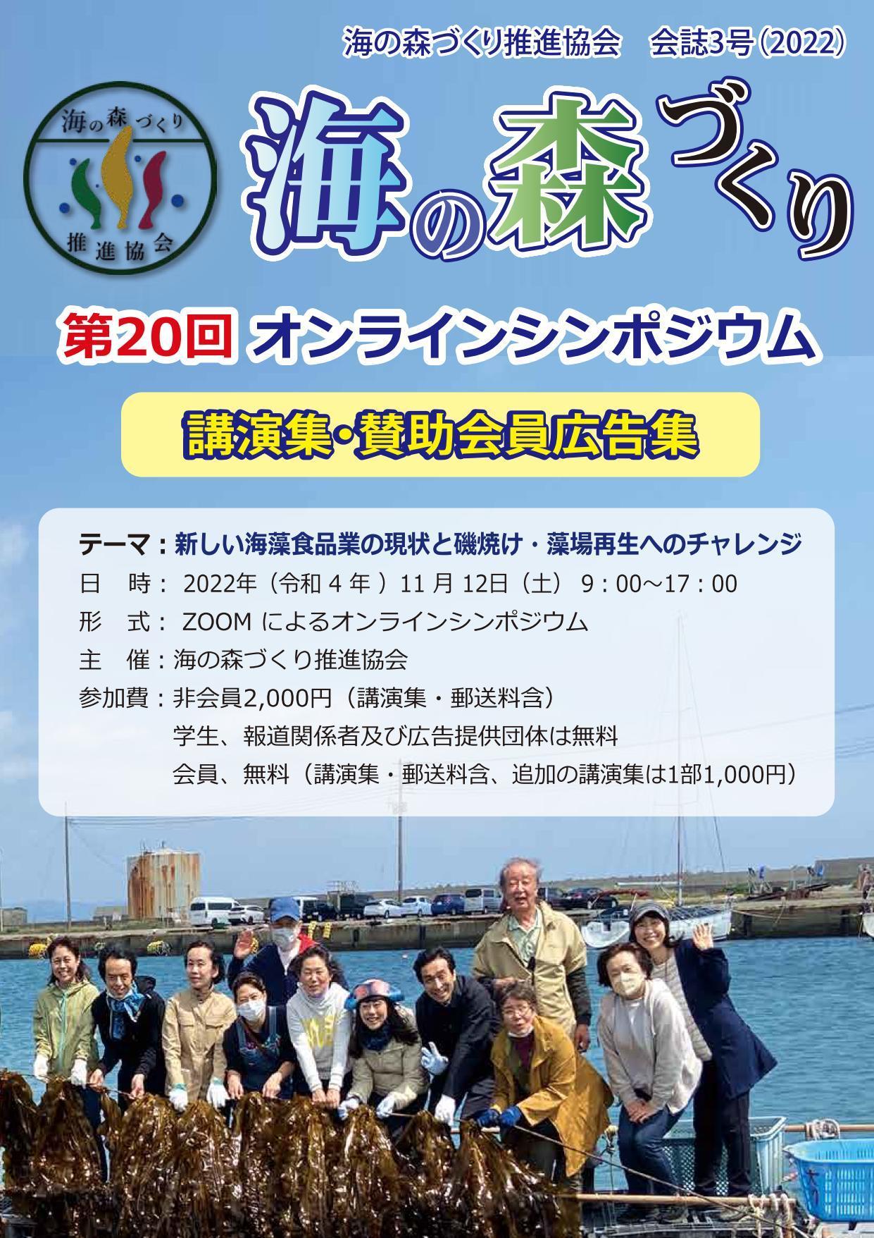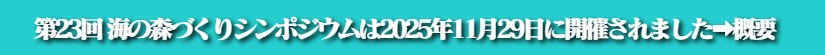 | 2025年9月12日 | 第23回海の森づくり推進協会シンポのプログラムを公開(テーマ「海の森づくり25年、原点と今、そして未来」日時:2025年11月29日(土)9時〜17時、内容につきましては今後変更になる場合もございます、10月17日一部修正)➡こちら |
