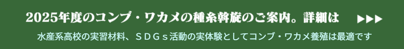 | 2025年10月22日 | 2025年度のコンブ・ワカメの種糸の配布(有料)案内を掲載しました。➡こちら |
