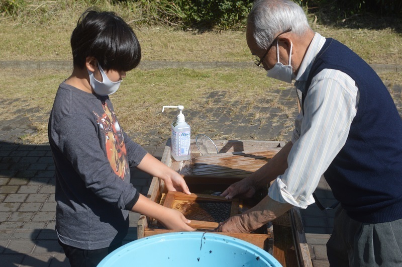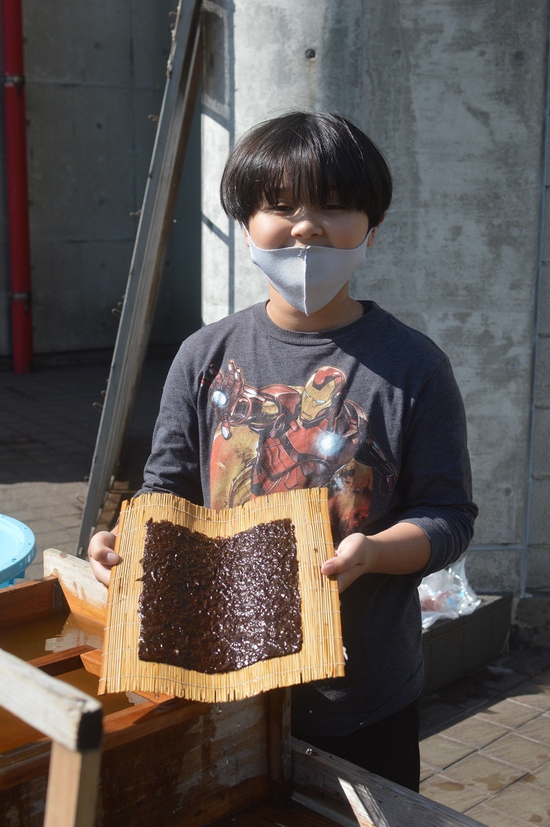 東京湾での手作りの海苔作りを再現する(写真:宮島千尋)