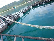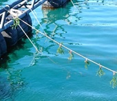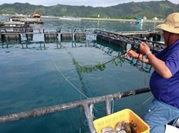 これまでの海面養殖で、越冬したⅠ㎏の種苗を海面養殖すると、12月養殖終了時に70~100㎏の収穫量となった。梅雨の塩分低下と夏季の高温は生産量に大きく影響を与えた。