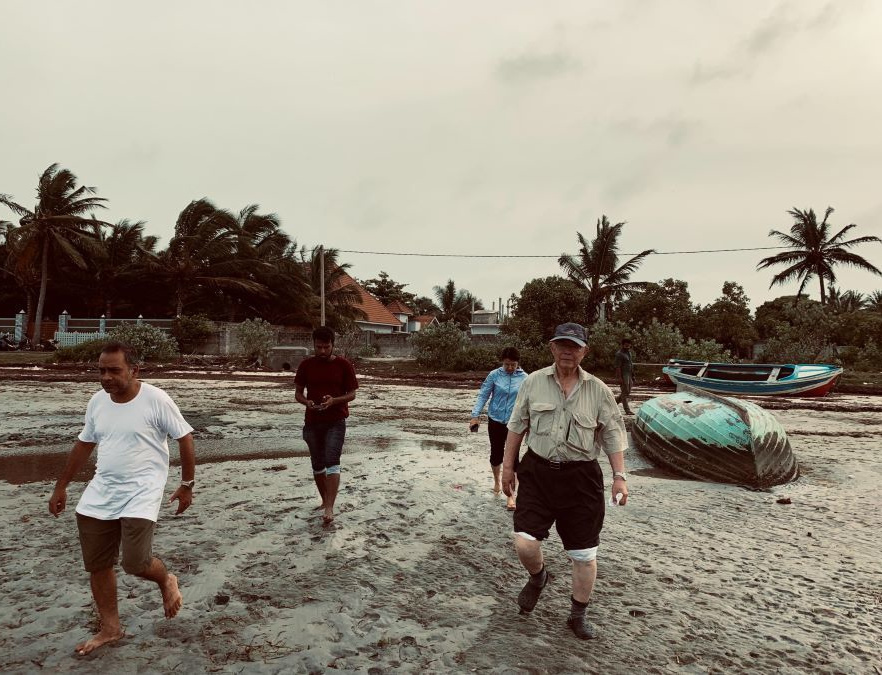2023年6月18日、スリランカ東部、ジャフナ―沿岸のナマコとキリンサイの養殖場視察。キリンサイ養殖はモノライン(杭にロープを張る)で、小規模に行われている。JICAはキリンサイ養殖の大規模養殖法の導入を支援し、派遣された。